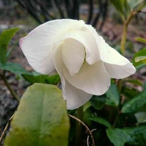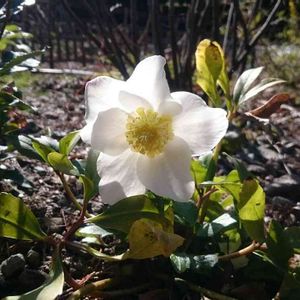 純白のクリスマスローズ💠 開花まであと少し…… 本当に真っ白で枯れ葉ばかりの庭に目立ちます🍀