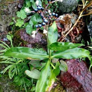 雨も滴るヤブミョウガ🌱 花が咲いて、実ができていました❗ おもしろい変化ですねー 前はそこに生えていることに気付いていなかったのに。。。