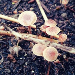 ⚠虫嫌いの人ごめんなさい⚠ ムスカリが枯れて、跡には謎のキノコ🍄 そして子コオロギ。。。 コオロギ大発生しています( ; ゜Д゜) 秋には虫の音を楽しめるでしょうか🌛