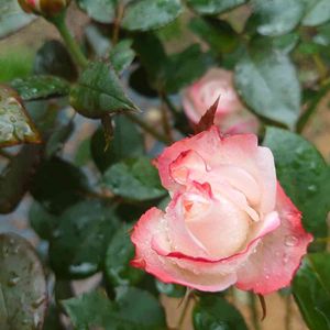 雨の日のノスタルジー🌹 だいぶ大きくなってきて嬉しいです😄 雨でなかなか咲いているところに出会えないのが残念…💧