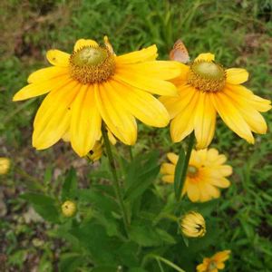目立つビタミンカラー✨✨ ルドベキアかな?? 蝶々つき(*´∀`*)🦋 2年目ですが去年より大きくなりました🌱 明日は久しぶりに山を見に行けます🏕 庭の植物たちは無事かなぁ…