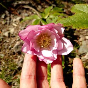 久しぶりにクリスマスローズを…(*˘︶˘*).。.:*♡ 山の庭でまた新しい種類が咲いているのを発見✨ 中心のピンクが素敵〜♥ 今日は風強いので花たちが倒されないか心配ですね🌀