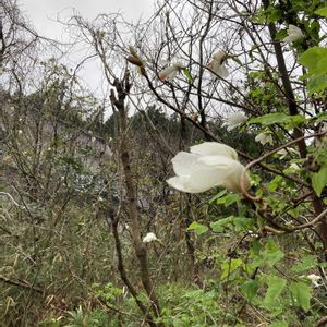 おはようございます♪(๑ᴖ◡ᴖ๑)♪ コブシの花 散歩道の公園の隅で咲いて いました😉 花が咲くまでまつたく気づかず 実物を見るのは初めてでした🤗 🏷️白い貴婦人✨