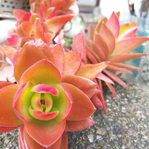こんにちは😊玄関先でニョロリ~♪と伸びてるこの子は何と言う子でしょうか?🙄 カメラのレンズがこちらを向いてるように見えるのは私だけですか?(´⊙ω⊙`) 名前、教えて頂きました。 『火祭り』のようです。 マダムさん、しぃさん、ぼんぼんさん、ありがとうございました🥰 火祭りは、ベンケイソウ科のクラッスラ属に分類される多肉植物です。肉厚な葉の部分が、気温が低くなってくる秋頃から真っ赤に色づいて、紅葉する姿はとても綺麗。 紅葉祭りは、同属の火祭り(ヒマツリ)と赤鬼城(アカオニジョウ)の交配から作出された品種とありました。勉強になりました! ありがとうございます🙏