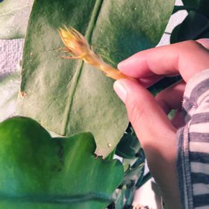 芽が🌱芽が〜ぁ〜‼️ (やはりムスカ調でお願いします) 水やったら、落ちた😱💦 めげるな。同じ株の月下美人に超小さい花芽があるから。 やっぱり開く寸前まで外が良かったのかな? 😭