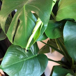 モンステラに穴が空く理由を発見❓‼️ 新芽が🌱にょきにょきしてたのか〜 違うと思いますが。見守って行きます😅