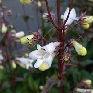 シロツリガネヤナギ(白釣鐘柳) オオバコ科ツリガネヤナギ属 [別名:ペンステモン・ジギタリス、ペンステモン・ハスカーレッド] 北アメリカ(USAアイオワ州・ネブラスカ州・ミズーリ州)原産で、観賞用に栽培される多年草。 初めましての花です。 ペンステモンと言われているみたいです。 5月17日 場所:浜松市