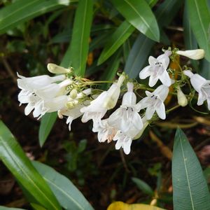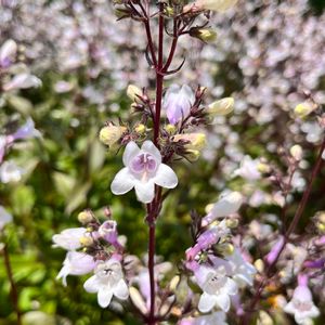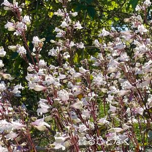 マンション前に咲いていた🌼シロツリガネヤナギ🌼のお花です🤚 別名 ペンステモン 長さ約3cmの筒状の鐘形の花を咲かせます🤗🎶 お花の先端は、2裂する上唇と3裂する下唇に割れて開きます😊 下唇の内側に明るい赤紫色の筋が入ります。