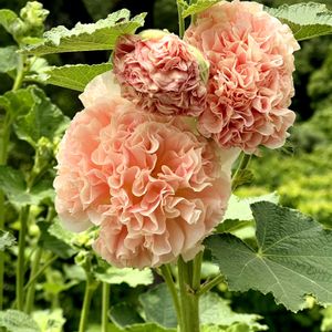 🌸ピンクのお花たち🌸 ① タチアオイ(ホリホック)八重 ② ☝🏻 同じ ゴージャスなフリフリ八重のサーモンピンクが可愛いぃ💗 ③ アスチルベ このピンクも可愛いピンクで素敵💗 ④ ラムズイヤー 葉っぱが銀葉のベルベットみたいでピンクの小花が沢山💗 ⑤ シロツリガネヤナギ (ペンステモン ディギタリス) 黒い茎にほんのりピンクと白のグラデーションのお花でGSでも見かける素敵なお花💗