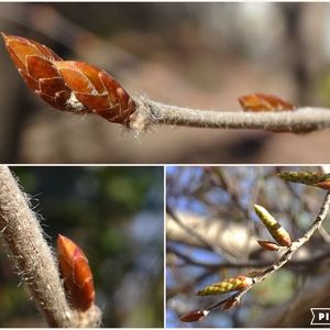 🏷金曜キラキラ🏷春の日差し イヌシデとアカシデ 春の新芽の色だなぁ🥰と思って、 近づいたらイヌシデとアカシデの花穂でした。 アカシデ、初めて見ました👀💕 春の日差しにキラキラでした✨✨✨
