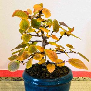 ソロの木(イヌシデ)の盆栽。今年は黄葉が鮮やかではありませんが、それもまた味☺️