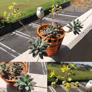 引っ越しでベランダ放置。。 気がついたら、にょきーとお花が🌼 子株も増えて、枝ぶりもパワーアップ✨