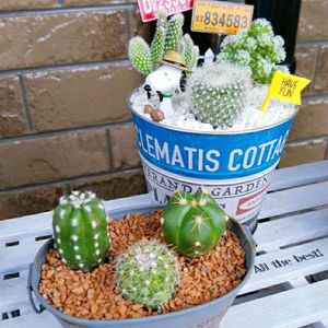 ボケボケなんですけど(笑) 9月pic最初はサボテンで🌵✨ この子たち、100円サボちゃんずの寄せ植えなんですが、 元は奥のブリキ缶に集結していました( *´艸`) 大きくなってきたので結構前に分けてたんです😁 タグ『サボテン寄せ植え①』から 成長の度合いを見てみてください💕 この子たちの今現在はもっとすごいです😳‼ もういっちょ投稿します♪