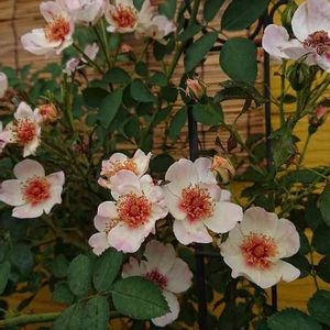 エリ ドゥ バビロン🌹 薄いなぁ~(*>∀<*)と眺めていたら、側でカマキリが食事中😅 お願い🙏 遠慮しないでいっぱい食べてね🎵 薔薇に悪さする虫みんなね~🎵 ここは消毒かけないようにしましたよ(〃艸〃)