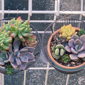 多肉寄せ植えイベントに子供と参加 右が子供チョイスで左が私☺️ つい、子供は熊や兎を… 私は乙女心を選んでしまう…💦💦 楽しかった〜😊 飾るところなくて、玄関先に🌱