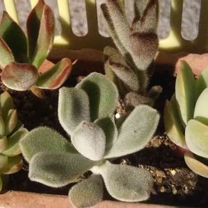 『黒兎耳』はいつもお日様を浴びている🎵 家に来たときより大きさは倍以上になった❗ 現在、高さ20㎝程度、あまり大きいのを見かけないけどどこまで育つんだ? 『子猫の爪』はなかなか大きくならない⁉️ しかし、子爪がいっぱい❗家に来たときは虚弱で一人で立てなかったがもうつっかえ棒は必要ないだろう🎵 早速、はずそう😃