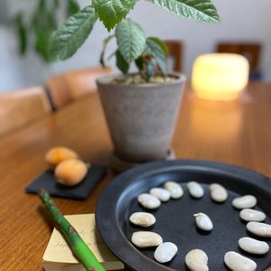 今朝、白花豆が発根しました🌱🎶 気温が低い日が続くので、6/1に水に浸けて水分含ませたら、乾かないようにしました。 この後ポットに埋め発芽させます🌱 昨日、琵琶が届き娘から譲って貰った実生琵琶2年目の鉢と記念撮影パシャ🤭📷 二本の実生琵琶あるので、もう蒔きません😅💦