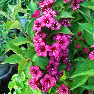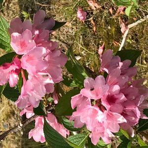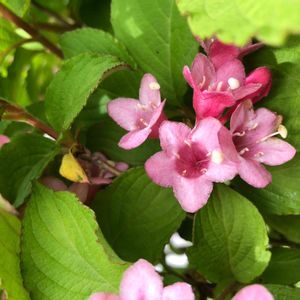 駅に行く道を歩いていて見つけました🌸 きれいなピンクのお花🌸がたくさん咲いていました💕 葉っぱは桜に似ているけど… 桜はもう終わっているし… お名前は? まーじーさんにタニウツギ(谷空木) と教えていただきました😊