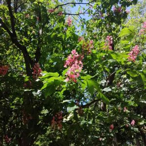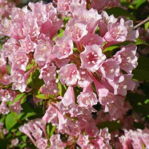 北風が吹く五月晴れの今日、見かけたこの高木のピンクのお花はタニウツギでしょうか? ご存知の方、教えてください。