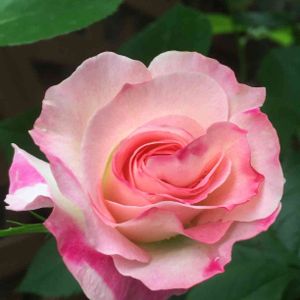 FLバラ(マチルダ) 白に淡いピンクの覆輪が美しい花色です😊 花付きのよいフロリバンダ系の薔薇です😃
