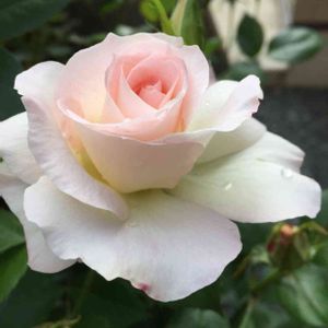 おはようございます🍀 四季咲きマチルダさん…🌹 お花も小さく色も淡くなり 優しい薔薇🤍🩷になりました。 暑さ☀️や虫さんからの被害はありますが 蕾も付いています🎶 暑さに気をつけましょう☀️👒🍧🧋💧