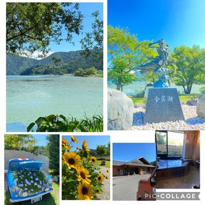7月1日 その③ 暑いのでローザンベリー多和田では 昼食のみ😋下段左2枚 その後、余呉湖へ🚗上段左 滋賀県には琵琶湖以外に余呉湖があるのを 初めて知りました😅 ここは鏡湖とも呼ばれおだやかで綺麗な湖です。 余呉湖の紫陽花を見に行きましたが少し行くのが遅かった様で残念でした。 また、天女伝説もあります。上段右 余呉湖を後にして白谷温泉八王子荘へ 下段右2枚 ここは車椅子の人も入浴できる貸切の 家族風呂があります。加水なしの100% 天然のラドン温泉でのんびり1時間♨️ 良い温泉でした🎶☺️ 🏷 愛しの紫へ参加させて下さい。 🏷yu&ゆうクラブへ参加させて下さい。