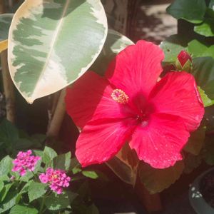 昨秋に見切品として購入したハイビスカスが咲きました(^^) 台風いやだな!