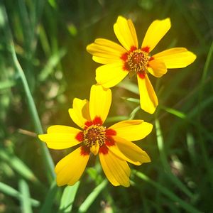 🍀🌻🪴💐🌹🌻🍀 🍀💛ハルシャギク💛🍀 💐オオハルシャギクの花言葉は(いつも 陽気)、(上機嫌)です 💐ハルシャギクの花は、黄色の花びら の真ん中が赤色という変わった風貌 をしています 💐真ん中の赤い模様の事を蛇の目にた とえ、和名は蛇目草(ジャノメソウ)と 言います 💐ハルシャギクは学名はコレオプシス 、キク科 属 ハルシャギク属の植物 で、原産地は北アメリカ、開花期は6 月〜7月、樹高は0.2~1mになります 💐ハルシャギクの(ハルシャ)はペルシャ が訛って付けられたと言われています 🍀🌻🪴💐🌹🌻🍀