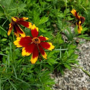 これは「ハルシャギク」でしょうか? 近くに花畑があって、そこから種が飛んで道端に自生しているようです。