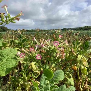 タバコの貴重な花です。 生産者は限られていて花が咲いたらすぐ摘み取られてしまいます( ; ; ) こちらはバージニア種という新潟が最北限の品種。熊本が生産量いちばんです。