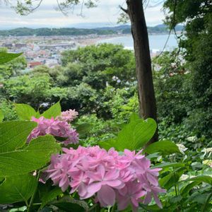 長谷寺紫陽花越しの相模湾 小雨が降って今日はまた肌寒い一日でした。 昨日職場の人が長谷寺にアジサイを見に来たのですがアジサイを見るのに長蛇の列で諦めたとか言っていました😊 良かった💓 今日のような、寒くて雨も降っている☂️日は本当に人が少ないです。 並ばずにゆっくりとスマホ片手に傘もさしながらですが足元を気をつけながら楽しみました🤗💕🎶 鎌倉は雨、寒い日に行くのが良いですよ💓