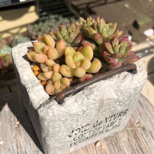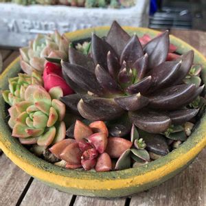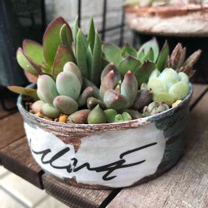 ツナ缶に寄せ植えしました! 葉挿しで大きくなった子も入ってます^ ^ かわいいなあ。。