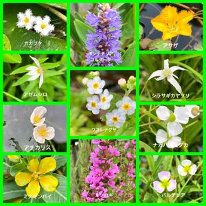 今日の水生植物達!! 『ハナガガブタ』 『ガガブタ』 『アサザ』 『バルデリア』 『シラサギカヤツリ』 『ミソハギ』 『ワスレナグサ』 『ナガバオモダカ』 『アナカリス』 『アゼムシロ』