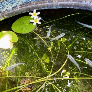 四度目の正直かな ガガブタの花が咲きました ようやく こんな小さな花だったのね、可愛らし✨ この青メダカたちの住処に欲しいなと何度となく植えてはみたもののなんとなく育ちが悪く、ちょっと弱ると途端にスネイル軍団に囲まれて消える😢 環境が合わないのだろうかと諦めかけつつ最後にネットでポチりましたよ 想定外の立派な苗が 花も葉っぱも次々と😊いいねー ガガブタとはこれいかに、、蓋?豚? #ガガ様 #ガガちゃん