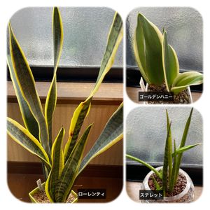 おはようございます😃 我が家のサンセベリア達の紹介です🥰 サンセベリア属 夏型 キジカクシ科(ユリ科) アフリカ原産❗️ ⭐️ローレンティー(250) Sansevieria trifasciata cv."Laurentii"❗️ "虎の尾" "チトセラン"とも。 ホームセンターでひと苗¥100で、ふた苗植えました、増えてます❗️🥰 ⭐️トリファスキアタ "ゴールデンハニー"(219) Sansevieria trifasciata "Hahnii"❗️ チビちゃんを二つ株分けしましたが、一つ腐ってしまった😅 ⭐️ステレット(252) Sansevieria stelett❗️ どんどん増えてます❗️🥰