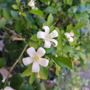 良い香りで次々と咲きますが、 すぐ花が茶色くなって 写真📷タイミングがなかなかない シルクジャスミン(ゲッキツ)です