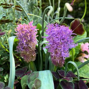 ムスカリ プリモサム💖 初めて植えました♥︎︎∗︎*゚ 他のムスカリが咲く中結構な頻度で葉っぱの中を覗いていました( *´艸`) 他のムスカリより咲く時期が遅いようです ポットに植えてある球根を買ったんだけれど札のpicのムスカリらしからぬ姿にびっくりでした‼️ 札のpic通りにもさもさのお花になりました😆