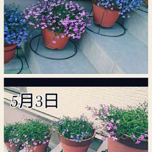 おはようございます😃 花壇のロベリアがモサモサしてきました😍 これは可愛い💕 もっと大きくなぁれ😊😊😊
