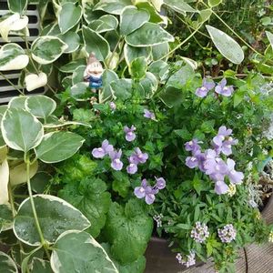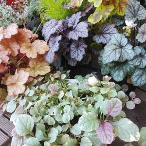 ヒューケラとヘデラの勢力争い。 でも、ヘデラはもうじき剪定しますがね。