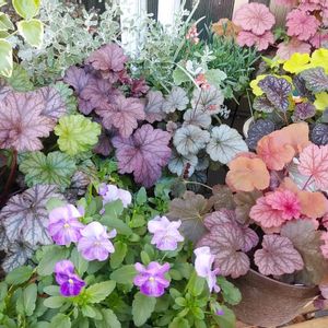 なんか😅 ヒューケラ元気💃なので寄せ鉢の間を空けていったら、 ベランダのスペースが…マズい! 密っています😣