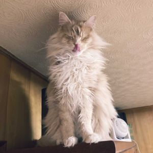 こんばんは🖐️ 暖かくなったり寒くなったりで、春が行ったり来たりの毎日。 🏷️みちのすけさんのにゃんにゃん祭り参加します。 滑り込みねー💦 天井に頭が付いてるよ🤣 大好きな食器棚の上、暖かい💕 そこまで登れないノルウェージャンは床暖で😁 2匹とも寝起きだよ〜。 窓ぎわの球根ベゴニアも次々に咲いてくれて楽しませてくれます。