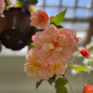 💐スカイガーデン💐 三島のスカイウォークにあるスカイガーデンは天井から沢山の花の鉢植えが吊るしてあります🌸 一つ一つ丁寧に手入れされています✂️ 下のお席は気を付けないと時々お水がポタリ💧と垂れてきます😅💧 1️⃣2️⃣ベゴニア🧡🩷 3️⃣ フクシア🤍❤️ 4️⃣5️⃣お花色々🌹🏵️🌺🌷🥀🌸
