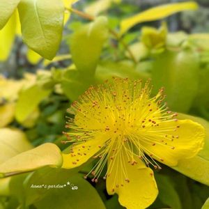 𖤣𖥧𖡼.𖤣𖥧 今日のお花 𖥧𖤣.𖡼𖥧𖤣 キンシバイ(ヒペリカム) 日当たりや気温で色が変わるヒペリカム *ゴールドフォーム* 夏はゴールド🌞 日かげではライム🍏 初冬の寒さを感じるとオレンジ色🍊 冬の間は黄色🌼 季節、場所によって様々な葉色を楽しませてくれます ふわっふわの蕊もゴージャス.*・゚ 耐寒性あり、常緑なので寒冷地でもオススメです ⚠地下茎で凄く増えます