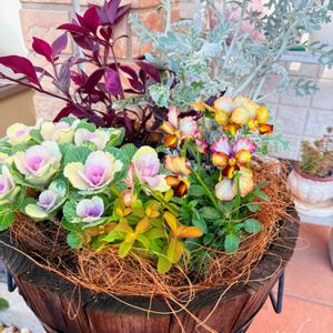 少し前に、庭の植物と買い足した植物で多年草の寄せ植えを作りました🌿 大きい鉢は植え替えが大変なので、2年間くらい植え替えなしでいけるかチャレンジ✨ 鉢の下半分くらいは鉢底石を入れて水はけ対策&土代を節約しています🤭 季節によって主役が入れ替わるのを狙ってみました。(季節ごとに鉢の向きだけ変える予定です) 〜春〜 ・シレネ ユニフローラ ジュエル(薄ピンク色の花) ・マルバストラム(アプリコット色の花) 〜夏〜 ・チェリーセージ ブルー(濃い青の花) 〜秋〜 ・ヒペリカム ゴールドフォーム(葉がオレンジに紅葉) 〜冬〜 ・ガーデンシクラメン(ピンク色の花) 〜早春〜 ・クリスマスローズ(黒ダブル) 〜通年〜 ・ヒューケラ パリ ・ミスキャンタス 強い植物に淘汰される植物も出てきそうですが、どうかな🤔 植え付け時にマルバストラムの根の回りかたがすごくて、今のところマルバストラムが最強なんじゃないかと思ってます💦