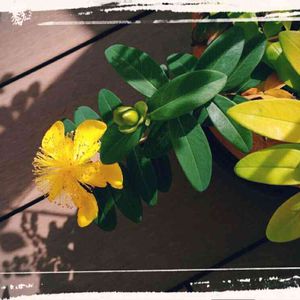 今朝、咲いた 🙆✨🙆✨🙆 カラーリーフとして育ててたのでお花が咲いて びっくり(゜o゜;) 得した気分♪ ★キンシバイとは違って、雄しべが長くてシュッとしてます ★ビョウヤナギともなんか違ってます ✏原種はヒペリカム・カリシナム お花は原種とそっくりそのまま🎵 葉は日当たりや気温によりオレンジ、イエロー、淡いグリーンに変化するので鑑賞価値は高い。 お花が咲くのは初めて見たかも🙌