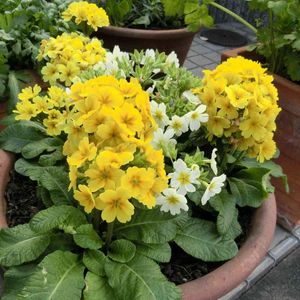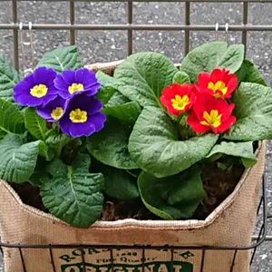 パンジー・ビオラと共に冬の寄植えの定番と言われるプリムラ ジュリアンです。 プリムラ ジュリアンはプリムラ ポリアンサと小型種のプリムラ ジュリエとの交配で1970年代に日本で生まれました。 ポリアンサは花が大きく茎が長いのに対し、ジュリアンは花が小さく株元に密集して咲くことで区別されてきましたが、最近は茎の短いポリアンサも出てきたため、今は大輪がポリアンサ、小輪がジュリアンとして扱われます。 サクラソウ科サクラソウ属の1年草。 ヨーロッパ原産・日本で品種改良 サクラソウ科サクラソウ属の1年草。 ◆プリムラ ジュリアン(矮性) 花型・色豊富。株コンパクトで根元にたくさんの花茎。早咲き多い ポリアンサと南コーカサスのジュ リエの交配種。 ◆プリムラ ポリアンサ(茎立) 花も葉もジュリアンより大きい。 花弁に厚み。最近は矮性もある。 エラチオール・ベリス・ブルガリスの3原種の交配種。 ◆プリムラマラコイデス(段咲) 中国原産。花茎を伸ばし数段咲き。花小さく超早咲き。