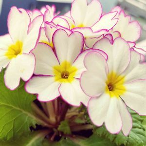 プリムラ ジュリアン アリーMIX 一重の花弁にパープルピンクの縁取りが可愛いです✨