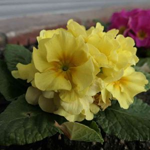 プリムラ ジュリアン💕 香りは黄色が一番香ると昨日のコメントで伺い、早速このピンクと地植えの黄色い花を嗅ぎ比べたら、その通りでした👃🤗