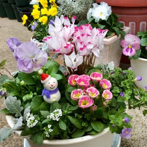 優しい色合いで寄せ植えしてみました ⛄️雪だるまさんも作ってみました💕
