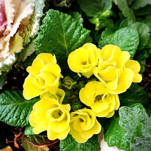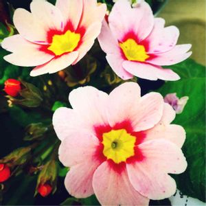 可愛い🎵✨ プリムラ ジュリアン💝 黄色に赤のふちどりの花びらが 愛らしくてパッと明るいお花ちゃん💠🎵 休みもあと2日です(-_-#)